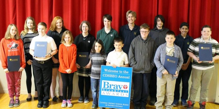 Kemptville Ontario – The Catholic District School Board of Eastern Ontario celebrated the first of four area Bravo Breakfast Awards yesterday at Hanley Hall in Smiths Falls, recognizing students from the Smiths Falls area schools with the prestigious award. One student from each elementary and secondary school is chosen to receive this award annually, which acknowledges the unsung heroes within CDSBEO Catholic schools.