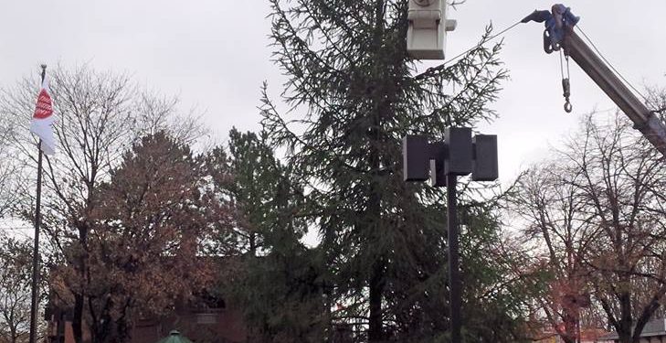 The establishment of the giant Christmas tree at the Justice Building is made possible by the contributions of numerous partners including Strathmore tree farm, the Cornwall Community Police Service, the Downtown Business Improvement Area, City of Cornwall, Black & McDonald and Metro Towing.