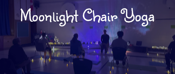 Thank you! Moonlight Chair Yoga came about as a workaround for the fluorescent lighting in the gym at Eamer’s Corners School. We created portable set-up including tea lights, string lights, ceiling projections and a mini moon projector. We loved it so much that we decided to do the same thing for our Alexandria yoga class.
