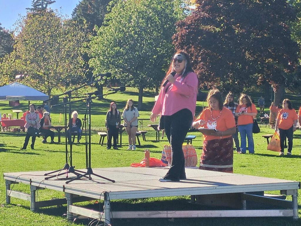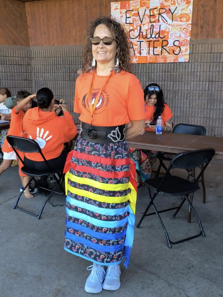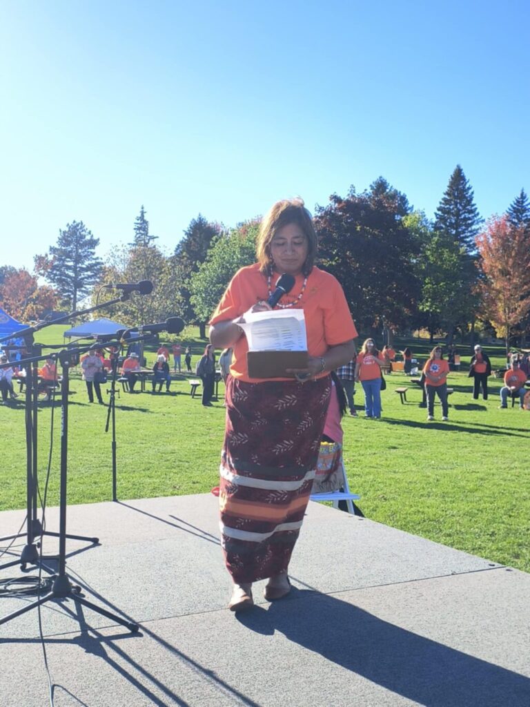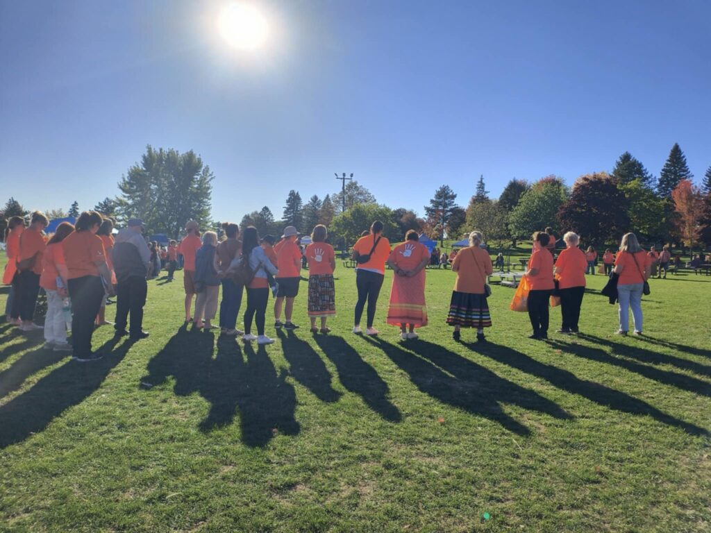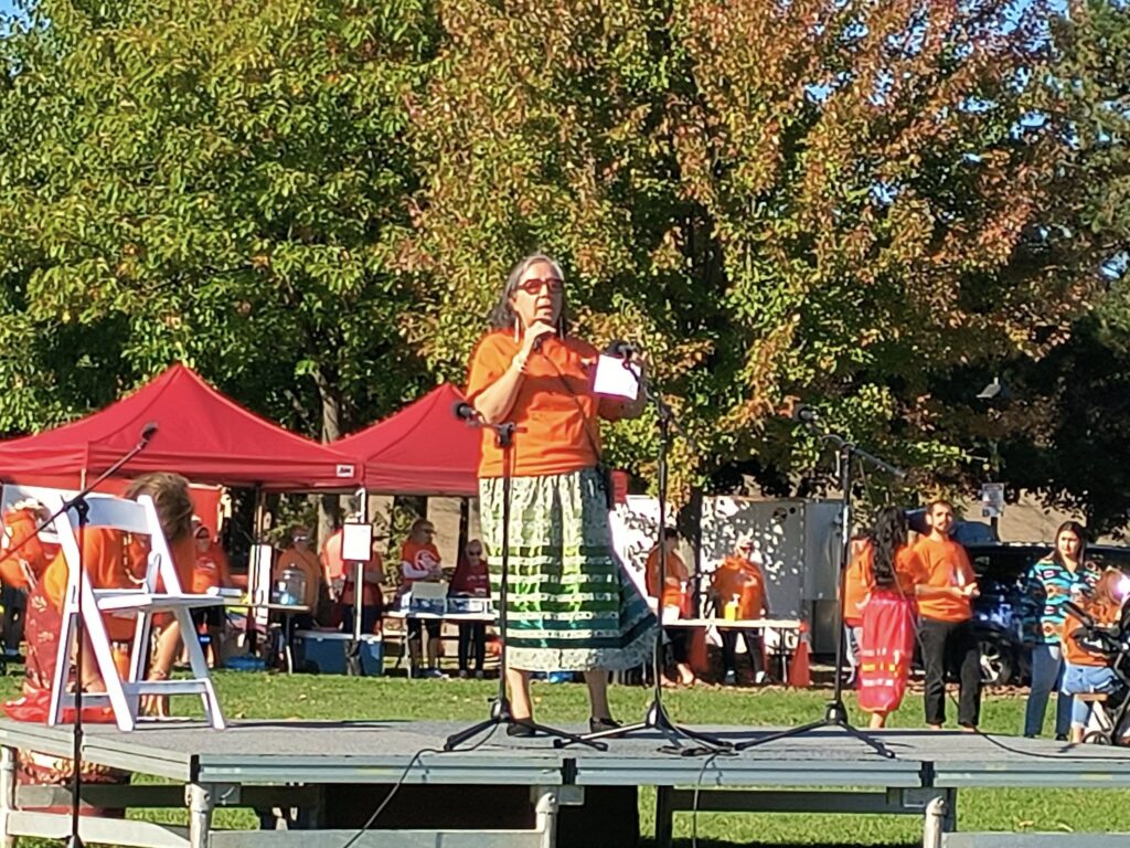 As we gathered, it was impossible not to think about the origins of Orange Shirt Day. The day stems from the story of Phyllis Webstad, who as a six-year-old in 1973 had her brand-new orange shirt — a gift from her grandmother — taken away on her first day at residential school. That shirt symbolized joy and identity, and its loss has since become a powerful reminder of the culture, dignity, and spirit stolen from Indigenous children.