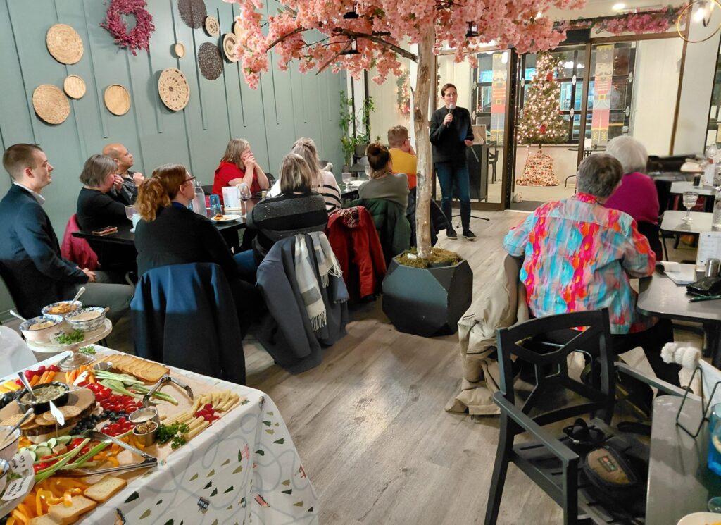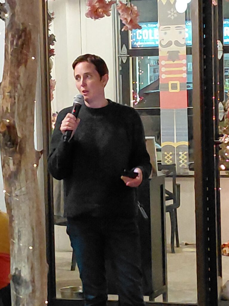 A significant portion of Pasma’s talk focused on organizing and rebuilding political capacity at the grassroots level. She reminded the audience that Ottawa West–Nepean “never elected an NDP MPP before 2022,” and said that victory happened only through steady, long-term work.