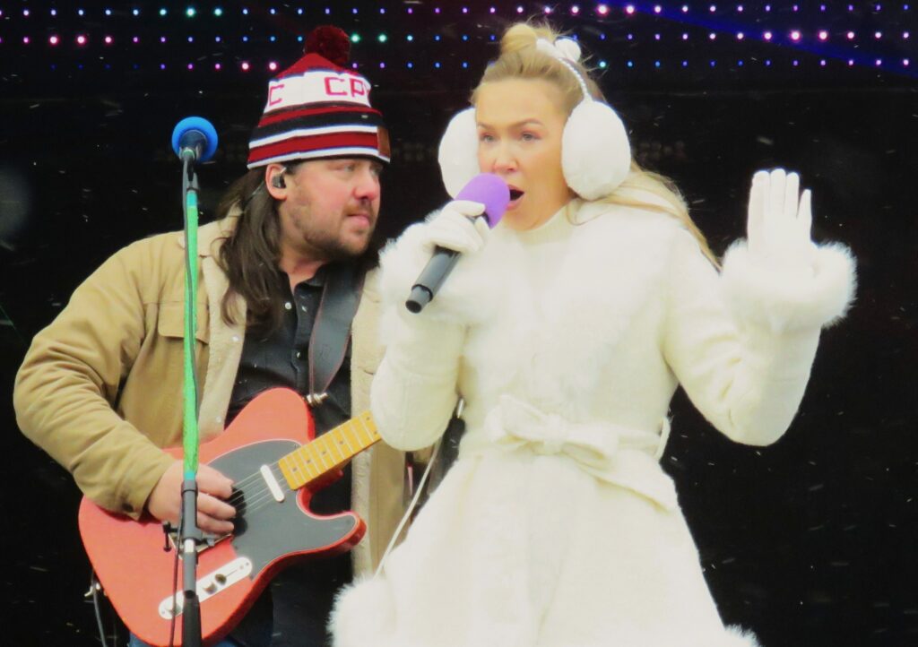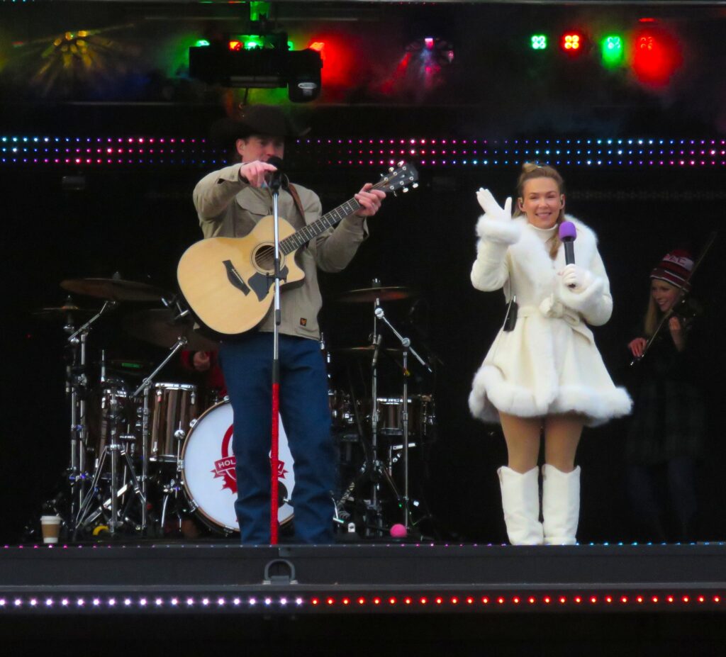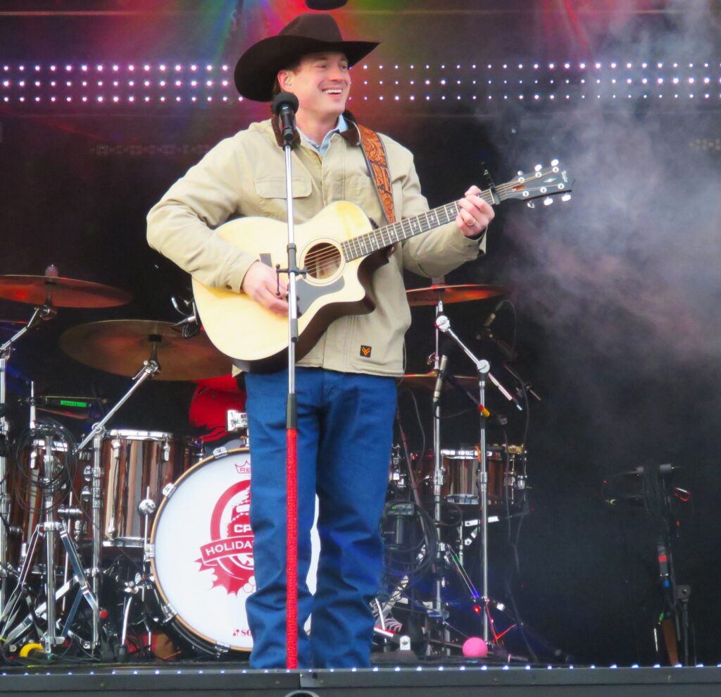 Country singer, Jade Eagleson, from Bailieboro, Ontario, a small community within Peterborough County followed Teigen’s performance. A multiple music award winner, most recently as the 2025 CCMA Male Artist of the Year, Jade started his set with the carol “Joy to the World” and ended with “Honky Talkin’,” from his album Honkytonk Revival released in 2021.