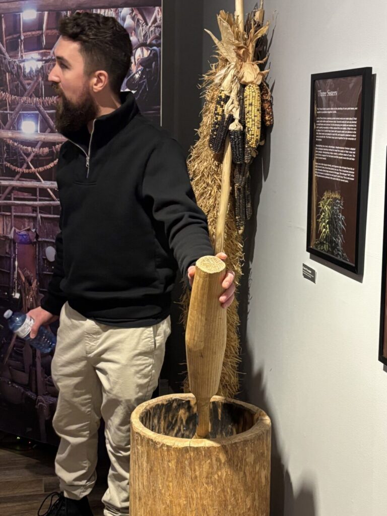 Amongst many other topics, we discussed the indigenous main staples, corn, squash, and beans, which are known as “The Three Sisters” because, traditionally, they are planted together purposefully. As per an explanation on the display, “the corm forms a support for the beans, and the squash covers the soil helping to control weeds.” Their interconnectivity creates a balanced agricultural system.