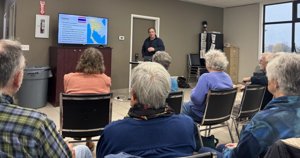 Richard Daigneault, a retired Landscape Architect and current Lead Singer/Musician for the Alexandria-based band Backtracks spoke of his South-East Asia Solo Adventure which took place in 2023/24. Inspired by a trip to Indonesia as a young man, he had always hoped to do more travelling but life intervened. Finally, at the age of 60, he realized his dream and undertook a four-and-half-month backpacking trip through Thailand, Laos, Vietnam, and Cambodia.