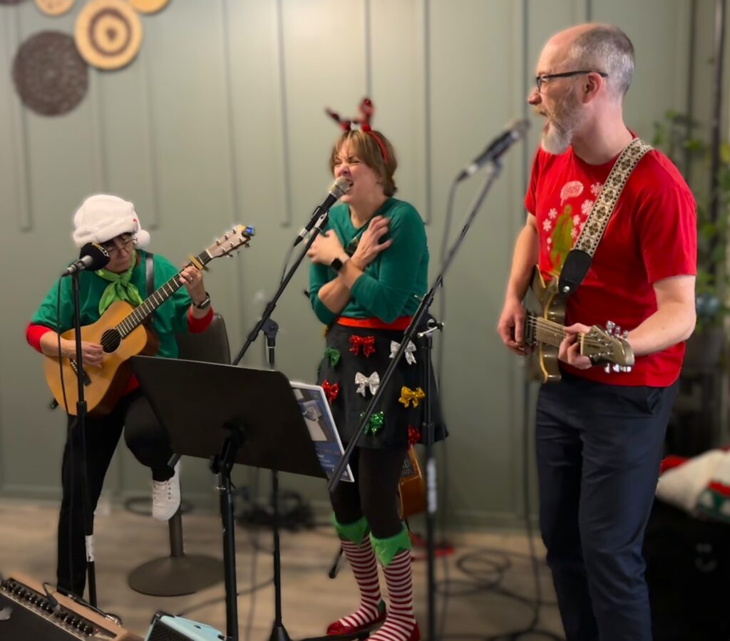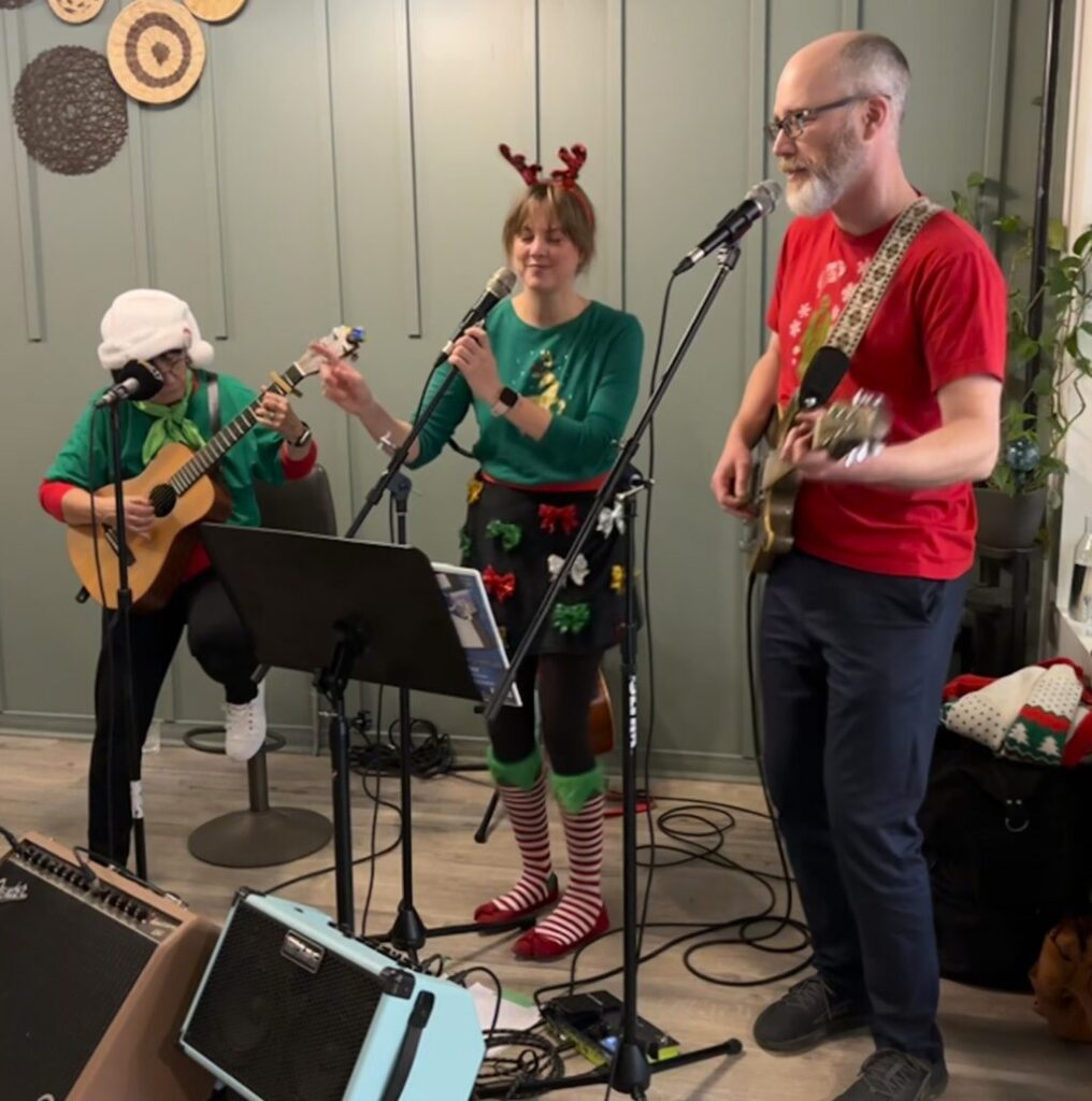 I headed over to Carrots ‘N Dates where Virginia Louise Dipierro, Cameron McPhee, and Jill Underwood were entertaining the guests with cheerful holiday tunes while crafters made their Christmassy creations in the background. There is always something interesting happening there.